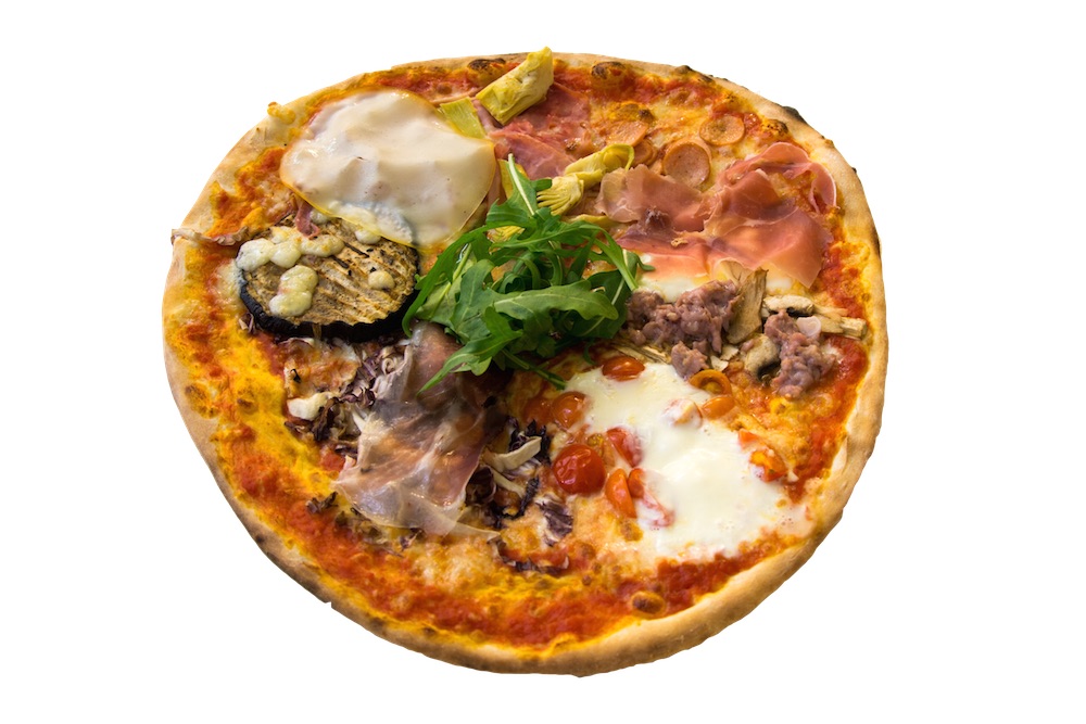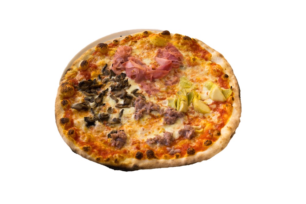 4 Stagioni (pomodoro, mozzarella, prosc. cotto, funghi, carciofini, salsiccia)